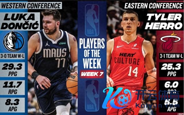 NBA通知上周周最好球员:卢卡-东契奇和泰勒-希罗开yun体育网。