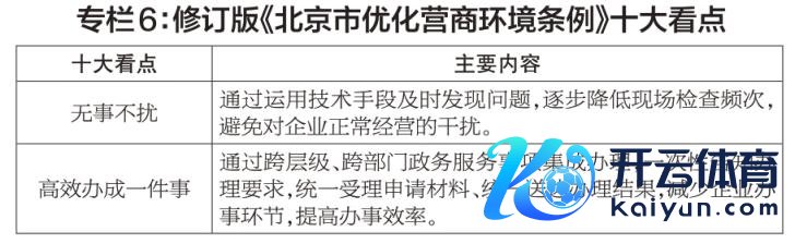 全面优化营商环境。落实北京市优化营商环境条例,以训诲企业大家获取感为起点,对标先进规矩和最好实践,从上至下和从下到上相结合,筹备新一轮转换任务,健全法治政府建设体制机制,打造首善模范、国际一流的“北京服务”。(1)完善营商环境监测评价体系,建好数字营商集成服务平台。(2)拓展“一件事”集成服务场景,鼓动“专事专议”轨制在更多场景落地,全面鼓动扫码稽察,严格范例涉企行政稽察。不竭优化迭代产业舆图。完善“京策”平台政策发布、解读、查询、推送、完了等功能。(3)推广“免证办事”应用场景,试点“四个免于提交”转换。(4)加强“服务包”企业共性诉求研究,推出一批“小切口”转换措施。(5)完善生意纠纷多元化解机制,作念好歇业重整企业服务,完善强制计帐配套实施详情。