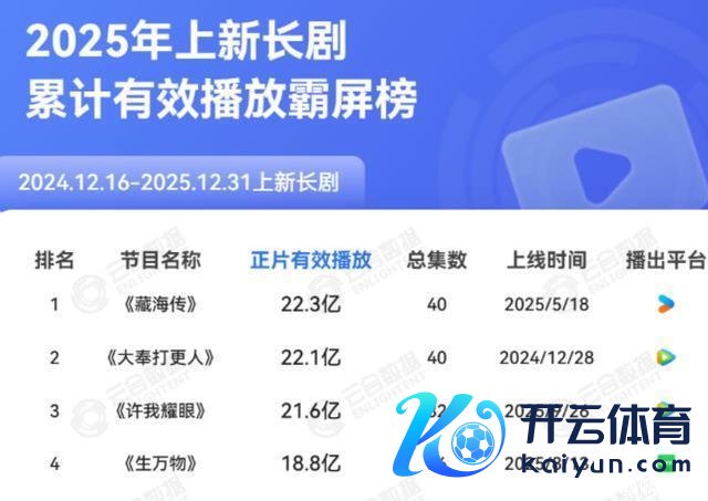 案牍| 易幸 裁剪| 南枫 淆乱了一整年的电视剧市集,虽说没什么安逸景观级大爆的作品亮相,可流量明星却亦然为数据争破了头。 如今云合数据放出年度脱水名次榜体育游戏app平台,到底谁才是剧王,这下终于有了定论。