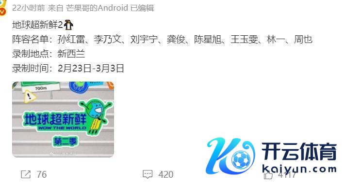 咱们都知说念,淌若一档综艺出圈后,大部分网友都但愿第二季可以用原班东说念主马,从传出的讯息上看,《地球超崭新2》行将去新西兰录制,然而却不是原班东说念主马。