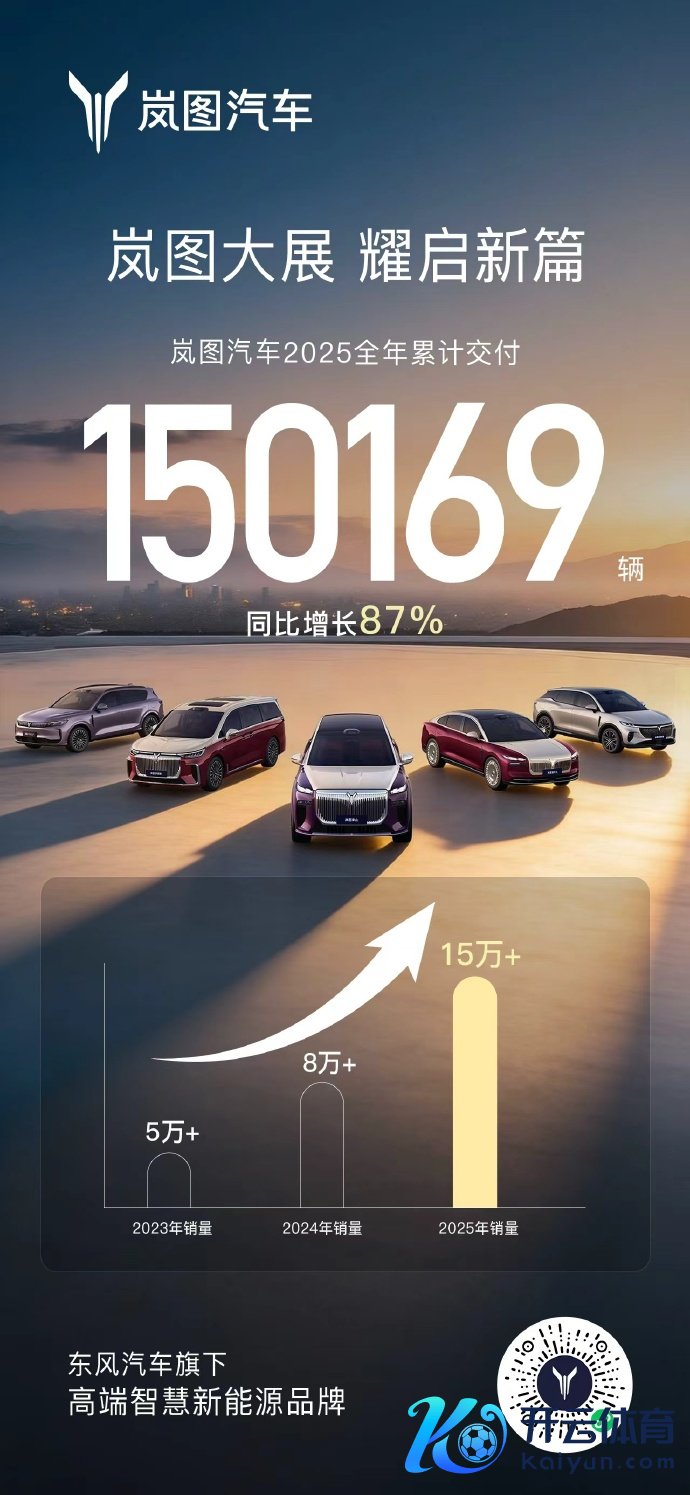 岚图汽车2025年累计托付15万辆,同比增长87%岚图汽车2025年累计托付15万辆,同比增长87%